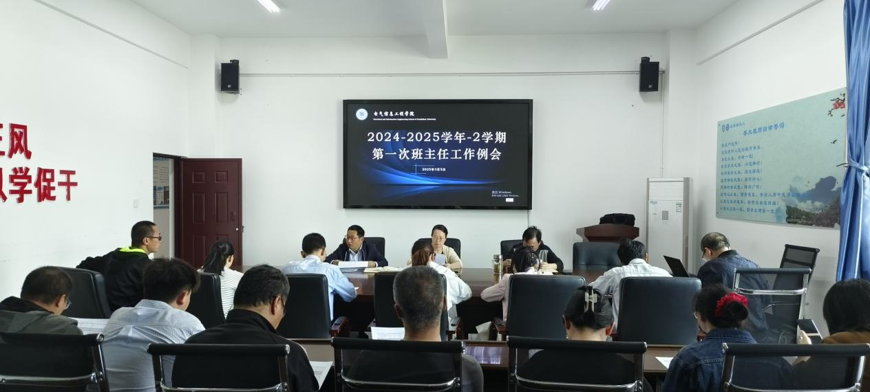 2025年3月5日,电气信息工程学院于分析测试中心七楼会议室召开本学期首次班主任例会,学院党政领导出席,全体辅导员、班主任参会。