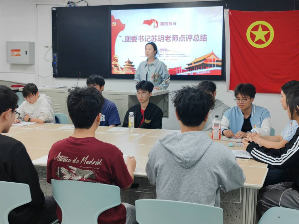 最后,电气学院分团委书记苏玥对本次组织生活会作总结讲话。她指出本次会议组织严密、推进有序,充分体现出团干部的高度责任意识和团员青年的政治担当。但应针对会议存在的不足进行反思整改。她要求全体团员深学细研本科教学审核评估应知应会知识,主动投身学校迎评促建功作实践,切实发挥共青团员的先锋模范作用。
