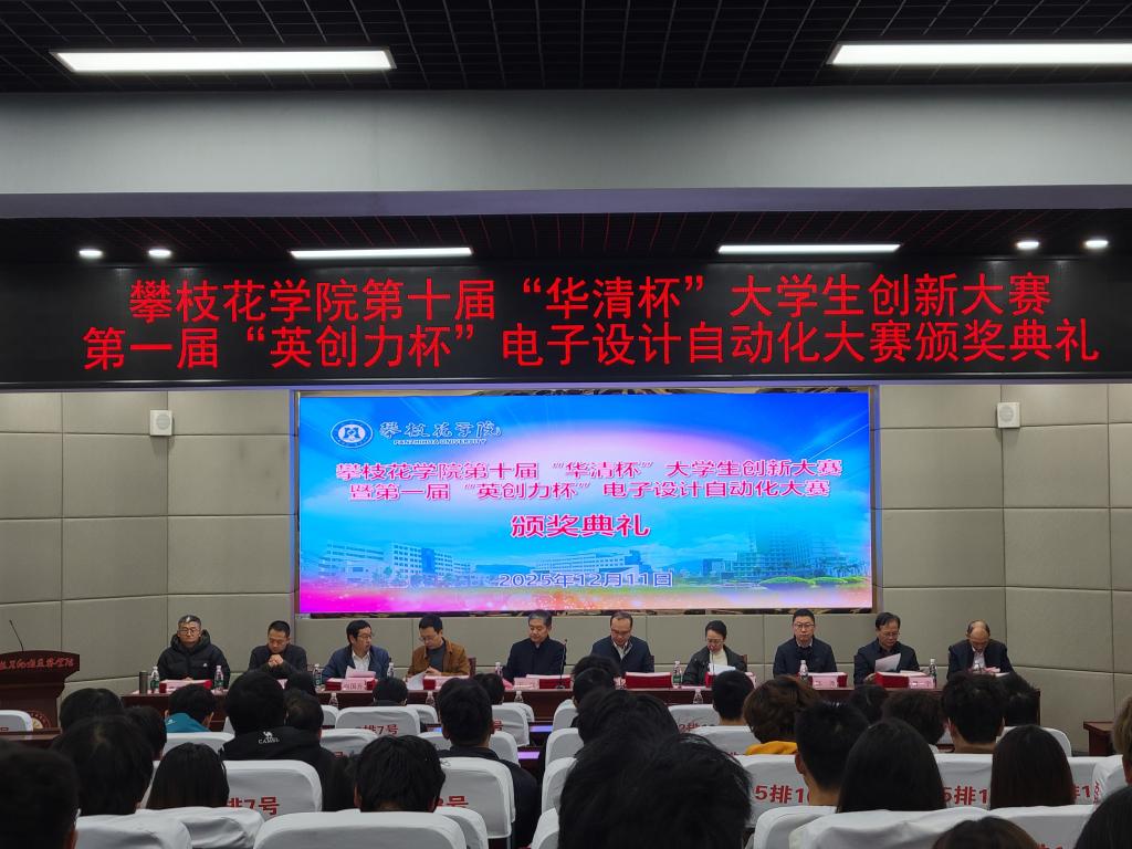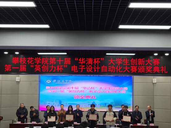 12月11日下午,我校在清风厅隆重举行第十届“华清杯”大学生创新大赛暨第一届“英创力杯”电子设计自动化大赛颁奖典礼。副校长王兵、北京华清远见科技发展有限公司副总裁陶金华、四川英创力电子科技发展有限公司秦明校长出席典礼。教务处、学生处相关负责人及电气信息工程学院领导班子参加活动。