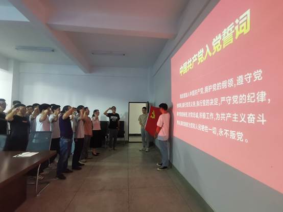 会议由党委副书记唐宇主持,首先是参会全体党员在学生第二党支部书记吴霏的带领下重温入党誓词。